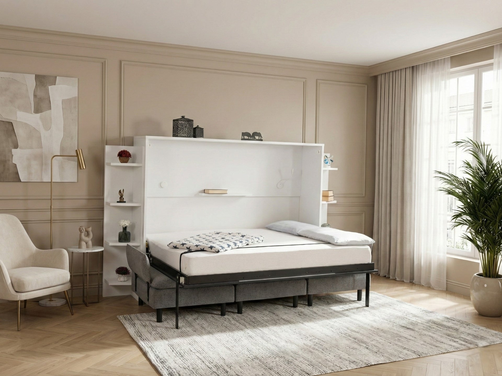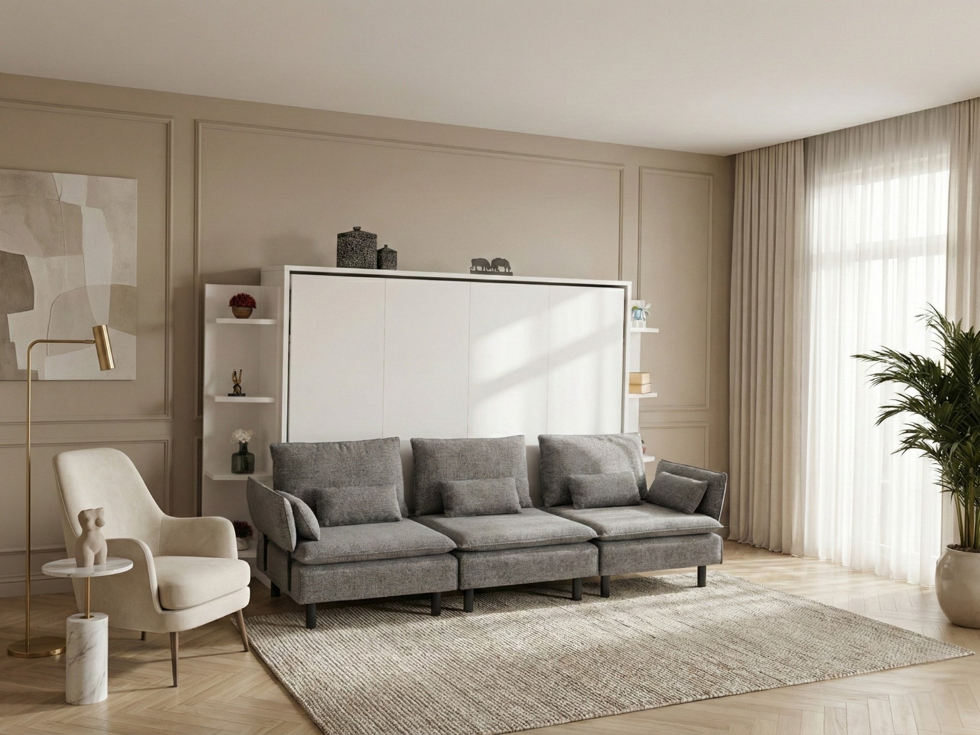 Kompakt Depolama ÇözümleriMinimalist kapaklı bölmeler ve fonksiyonel raflar ile odanızdaki dağınıklığı tek bir noktada toplar.